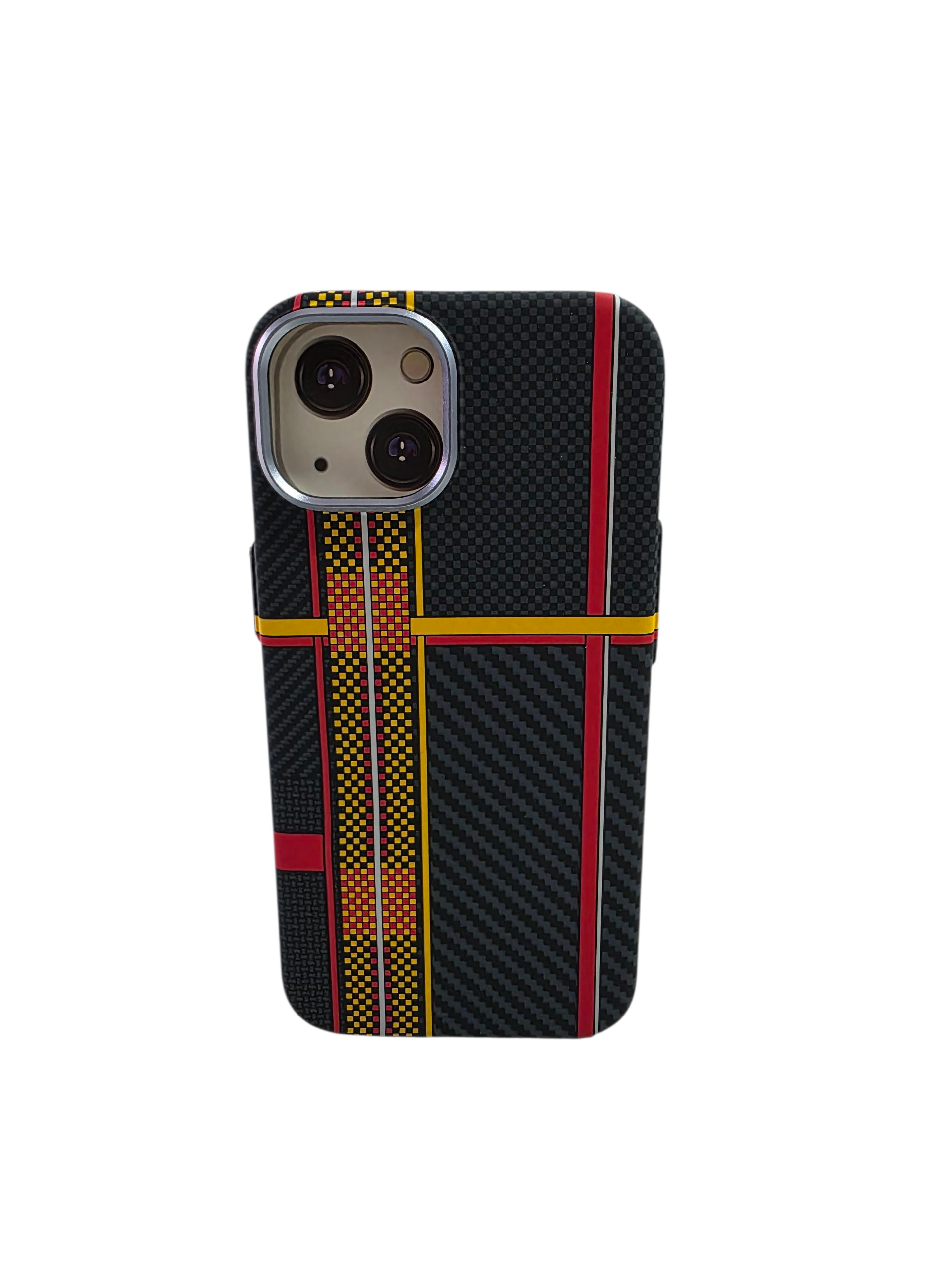 Elevate your iPhone 16’s protection and style with this premium Slim Carbon Fiber Case. Designed for a sleek, modern look, the case features a carbon fiber texture with bold red and yellow racing stripe accents, giving it a sporty and high-performance aesthetic.