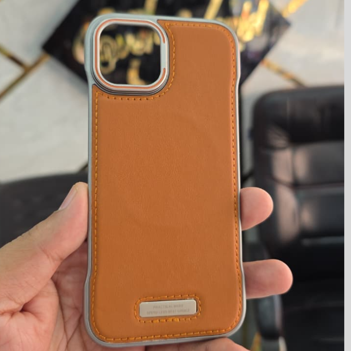 Magsafe Compatible Metal Frame Leather Case for iPhone 16